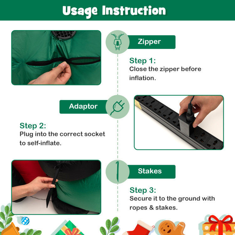 ● Superior Stability: Coming with 8 ground stakes and 4 windproof tethers, this inflatable Christmas decoration is easy to secure to the ground, thus resisting strong wind. You can set it up in the backyard, lawn, the entrance of the amusement park, grocery and more.