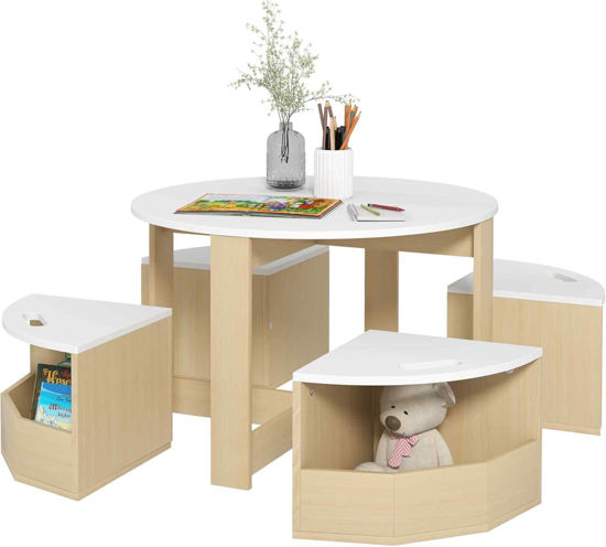 - Children's Play Set: This 5-piece kid's table and chair set is suitable for playdates. A table and four chairs encourage social interaction and cooperative play. It's great for classroom, playroom, nursery, and daycare.